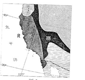小题3:R城市沿岸有寒流经过,所处II气候区气候类型为地中海气候,夏季在副热带高气压带控制之下,多晴朗天气,气温较高,加剧了海水蒸发,使其夏季常被雾笼罩,故答案选A。