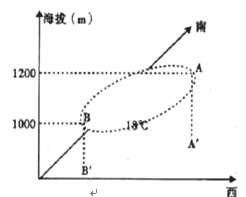 5、单选题 读下图(某山脉18℃等温线空间分布图),完成下列小题。