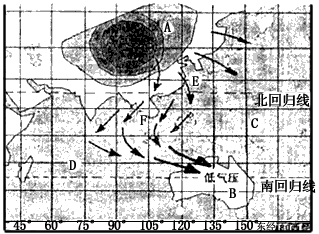 (3)“F”风是_______季风,“E”风是_______季风,浙江受此季风影响时气候特征是___________。