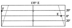 4、单选题 下图中,小圆圈有一处为太阳直射点,两条虚线均为晨昏线。读图,回答1~2题。