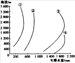2、单选题 下图显示中国不同地区山地年降水量从山麓到山顶的变化。读图,回答1—2题。