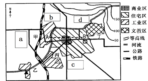 ①缓解老城区用地紧张状况 ②扩大城市规模,方便城市内部联系和管理 ③扩大对外开放 ④分散老城区城市职能,减轻环境污染 A.①②③ B.①②④ C.①③④ D.②③④ 2、单选题 读“某城市规划简图”,该市常年盛行东北风。据图完成6-8题。 |