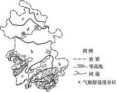 2、单选题 读某区域气候区分布图(下图),回答下列问题。