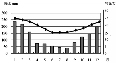 (2)由巴西东南沿海气温和降水情况可知,世界杯足球赛举办城市所处的气候类型是热带草原气候,6月、7月份是当地的冬季,气温温和,而且此时期降水少,有利于在室外举办世足球赛。