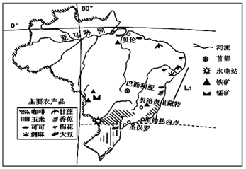 (4)评价地区工业形成条件一般从有利条件、不利条件两方面分析。由材料一巴西地理简图可知巴西铁矿丰富,而且中心城市圣保罗和里约热内卢位于沿海地区,海运便利,这些是发展钢铁工业的有利条件;