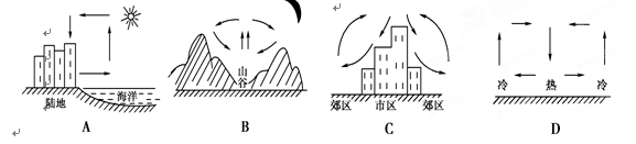 1、单选题 下列示意图中符合热力环流原理的是( )