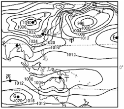 小题1:甲、乙、丙、丁四点的风向依次是 A.西北、东北、东南、西北 B.东南、西南、东南、西南 C.西北、东北、西北、东南 D.东南、西南、东南、西北
