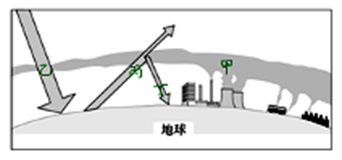 A.甲气体吸收了大量的长波辐射,导致大气增温 B.乙辐射的热量在大气中被大量吸收增温 C.丙辐射的热量被大气中臭氧大量吸收而增温 D.丁辐射是导致温室大棚热量较高的主要原因 |