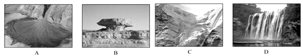 【小题2】乙图中像刀刃一样的山脊与下图中哪一类地貌的成因相同( )