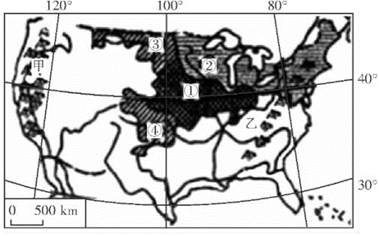 1.下列关于图中甲、乙两地山脉自然地理要素的叙述.正确的是2.图中的美国农业带