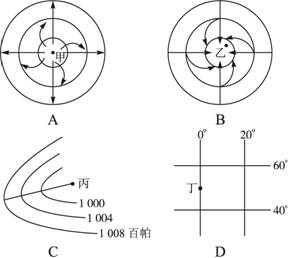 1.甲地气候类型为2.影响a地降水的主要风向是