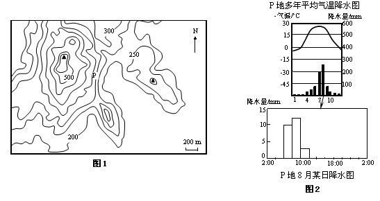 1.P地某日的降水类型可能为2.此次降水对P地的地质作用主要表现为