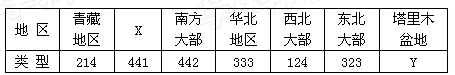 3、单选题 如果每个气候资源类型以3个阿拉伯数字表示,三个数字从左至右分别表示水分资源、热量资源、光照资源的质量等级。读我国气候资源类型分布表,完成5—6题。