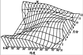 (1)在一年内到达大气上界的太阳辐射纬向分布示意图中,纵剖面表示某一_______太阳辐射随_______