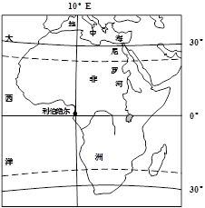 小题2:利伯维尔位于赤道上,日出时为6时,利伯维尔位于10°E,处于东一区,与15°E相差5°,时间相差20分钟,所在时区区时是6时20分,故选B。
