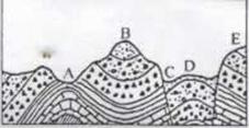 A.a处侵蚀物的堆积 B.b处侵蚀物的堆积 C.c处侵蚀物的堆积 D.本区域在地壳运动下沉过程中接受的新的沉积 |