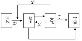 小题1:大气增温的热量主要来源于地面辐射,全球气候变暖主要是大气的逆辐射增强。①是大气对太阳的消弱作用,②是太阳辐射,③大气辐射,④大气的逆辐射。选D正确。