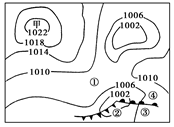 (1)影响甲处的天气系统是________,在该系统的控制下,甲处的天气特点是________________________________________________________________________。