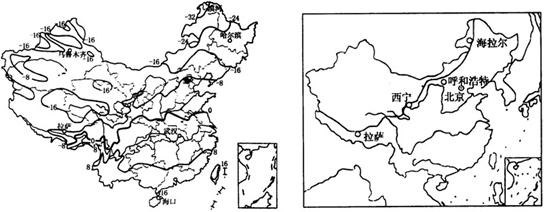 (3)我国地形多种多样,山区面积广大,对农业生产有哪些有利和不利的影响(8分) 5、综合题 读我国一月平均气温分布图、季风区与非季风区分界线示意图,完成:(9分) |
