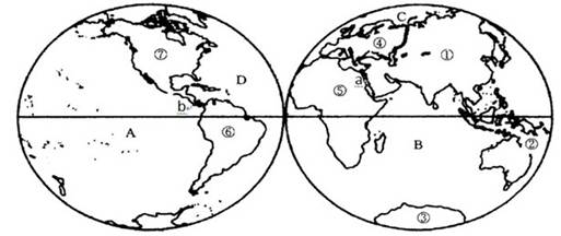 (3)①⑤大洲的分界线为a:?运河。⑥⑦大洲的分界线为b:? _运河。④⑤大洲的分界线为:?。
