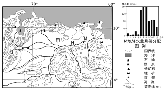 4、单选题 甲国为拉丁美洲人均GDP较高的国家,与中国有良好的贸易关系。读下图回答问题。(15分)