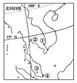 小题1:图中数字代表的城市:①是金边,②是曼谷,③是吉隆坡,④是新加坡,①地和②地属于热带季风气候,③地和④地属于热带雨林气候,但全年皆高温是四地气候的共同特点。正确答案选B。