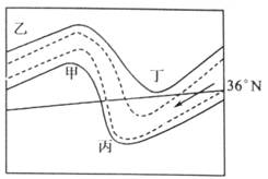 小题2:甲、乙、丙、丁四处河岸流水侵蚀作用最显著的是