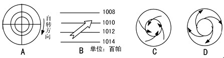 小题3:C是中心为低压的气旋;D是中心为高压的反气旋。