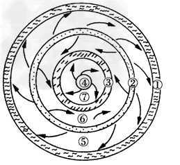 3、单选题 下图是以极地为中心的某半球气压带、风带分布示意图(箭头表示风向),读图回答1—3题。?