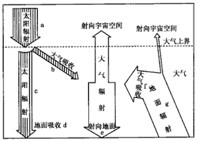 (1)在图示各项内容中,由于________、________(填写代表的英文字母)的存在,使大气具有“温室