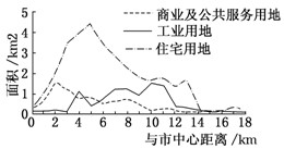 1、单选题 下图为“我国某城市主要功能用地面积空间变化图”。完成1—2题。
