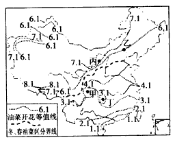 1、单选题 油菜是我国重要的油料作物,分布广泛。读“中国各地油菜开花日期等值线示意图”,回答1~2题。