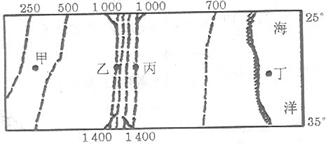 2、综合题 该图为“我国东部某地区地形等高线及年等降水量线图”。读图回答下列各题。(12分)。
