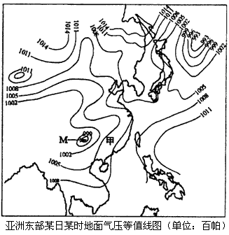 1、若M点吹东南风,则该天气系统所处的位置和性质分别为