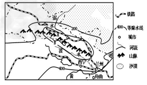 (2)读图中等降水量线分布,分析图示地区降水的分布特征。