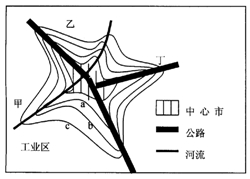 2、单选题 ?下图是某城市的等值线分布图,图中a>b>c 。据图分析回答1-2题。