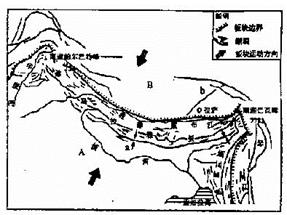 4、单选题 下图中a、b、c是沿某纬线分布的三个板块。据此回答下列小题。