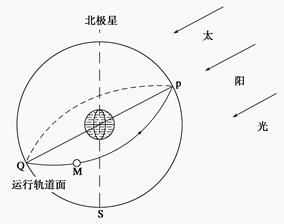 3、单选题 下图为“某卫星M绕地球运行轨道及方向示意图”,M第一次到达P点时,地球、卫星、太阳正好在同一直线上,且北京时间是2011年6月22日20时,卫星运行的周期为6小时。据此回答下题。