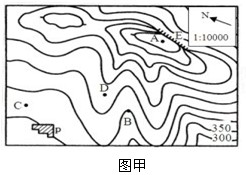 (1)从图甲看,所示地区的山脉走向是___________;陡崖的相对高度不会超过_______米。