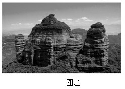 在距今1.4亿年至7000万年间,丹霞山区还是一个大型内陆盆地,后来经过复杂的地质作用形成今天的地貌形态(图乙)。
