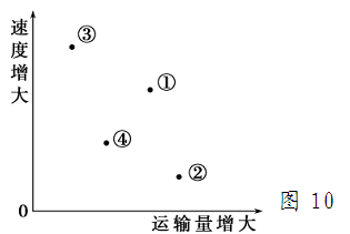 1、单选题 图10为“我国主要运输方式的运量和速度的关系图”,读图完成下题。