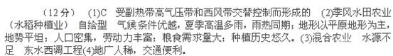 2、综合题 读下面世界某区域农业生产地域类型及气温降水图,完成下列要求:(12分)
