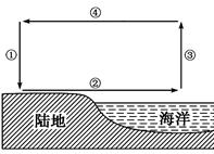 3、综合题 图甲为气压带和风带季节移动示意图,图乙为世界海陆分布局部图。读图完成下列问题。(10分) 4、单选题 读下图,若图中所示的是海陆热力环流,说法正确的是 |