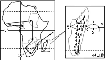 1.上述八个国家中,沙漠广布的两个国家是2.上图中M线为一月份20℃等温线,其西段尚未画完。请从数字所表示的弧线中选出正确的两段,与M线组成完整的等温线。应选择3.关于右图中的岛屿,叙述正确的是