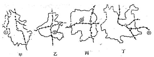 2、单选题 与图中省(区)甲、乙、丙、丁简称相对应的一项
