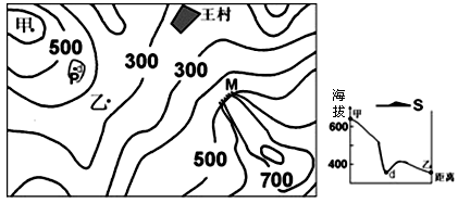 4、单选题 下左图为某地等高线地形图,右图为此图甲、乙两点间地形剖面示意图,据此回答下列各题。