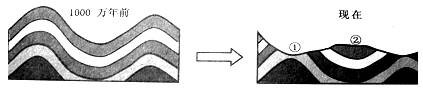 【小题2】图示由1000万年前发育到现在,该地区的地表形态的变化主要反映在上部岩石的缺失,是受外力侵蚀作用的结果。