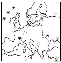3、单选题 下图为欧洲部分地区略图,图中四条线是重要的地理界线。完成1—2题。