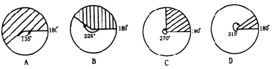 4、单选题 下列四图中心均为北极点,阴影部分表示9月21日,则北京为9月22日17时的应为