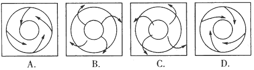 5、单选题 下图中正确表示北半球反气旋的是